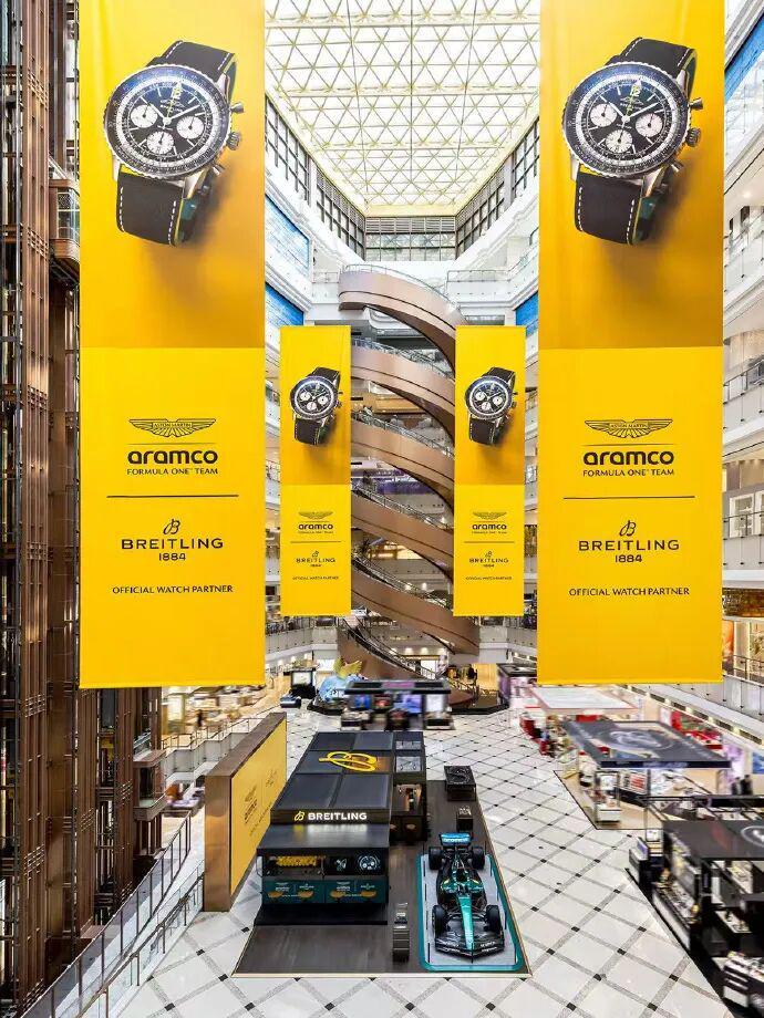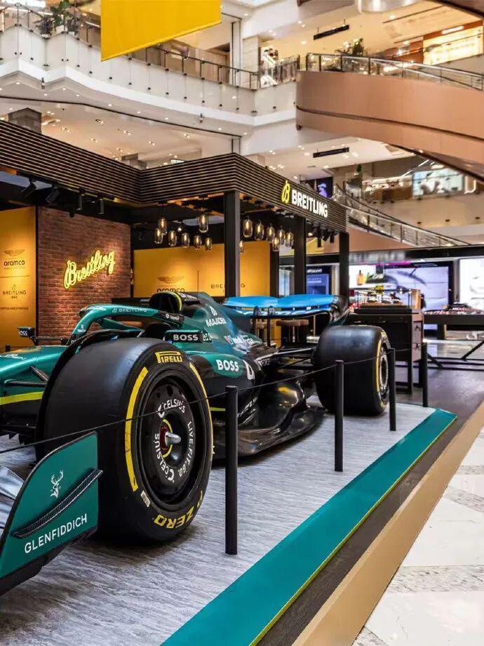 在上海南京东路的新世界新丸中心一层中庭,打造了一处名为 “F1®驭时赛道” 的限时概念空间,从3月11日持续到3月22日,让大家都能够进入这次品牌与阿斯顿·马丁及 Aston Martin Aramco Formula One™ Team 的合作“零距离现场”。