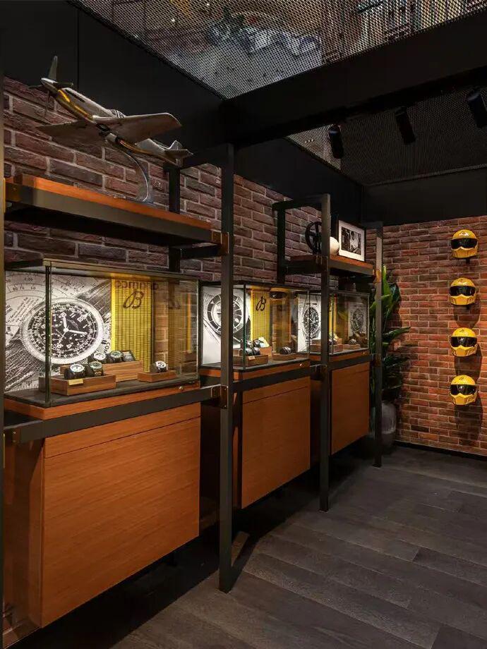 整个空间的视觉语言,延续了百年灵一贯风格美学,充满现代工业氛围,同时也有复古美学的加持。