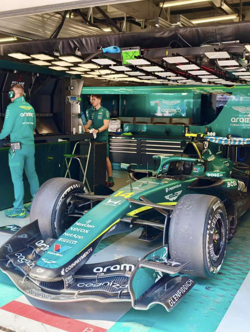 真正的视觉焦点则在空间中央——一台等比复刻全新赛季的 Aston Martin Aramco Formula One™ Team(AMR26) 赛车模型,真的很炫酷,赛车爱好者必打卡项目。