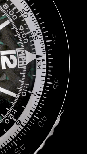 并不是那种把车队颜色一股脑铺满表盘的直接做法,而是处理得更聪明。整体基调仍然是深色、冷静的,赛车绿被收进盘面的细节里,作为点睛之笔,既醒目又克制。